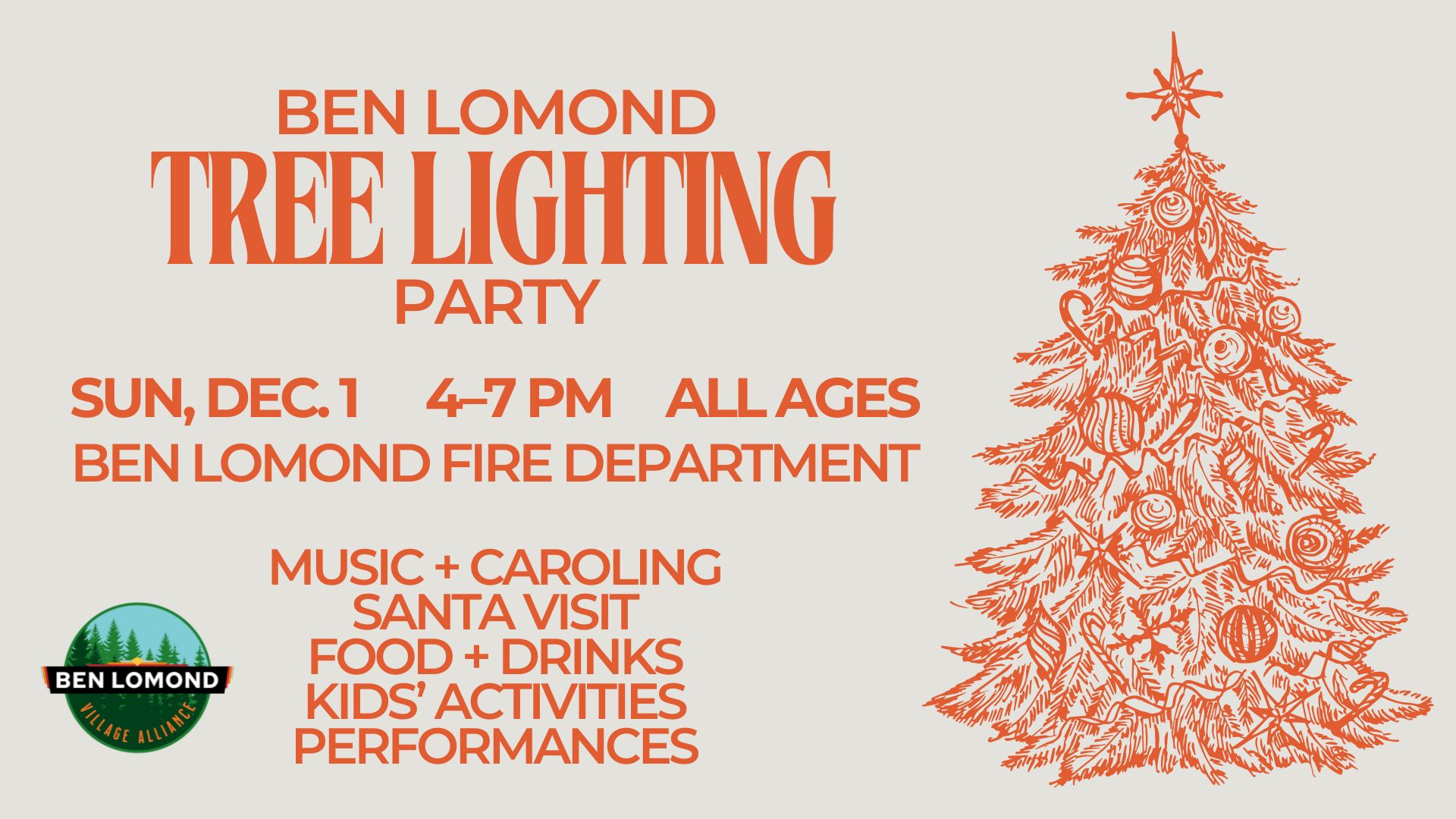 Join us for the first-ever Ben Lomond Tree Lighting Party on Sunday, December 1, from 4-7 pm at the Ben Lomond Firehouse! This family-friendly event has free entry, with snacks, beverages, activities available by donation, and dinner available for purchase. Festivities include kids’ ornament-making stations, holiday performances, and seasonal music from local musicians, all leading up to our exciting community tree lighting. Don your festive red attire and bring canned food for donation to Valley Churches United. Parking will be available at the nearby Church of Jesus Christ of Latter-day Saints at 9545 Love Creek Road. Special thanks to the BLFD Auxiliary for their help!