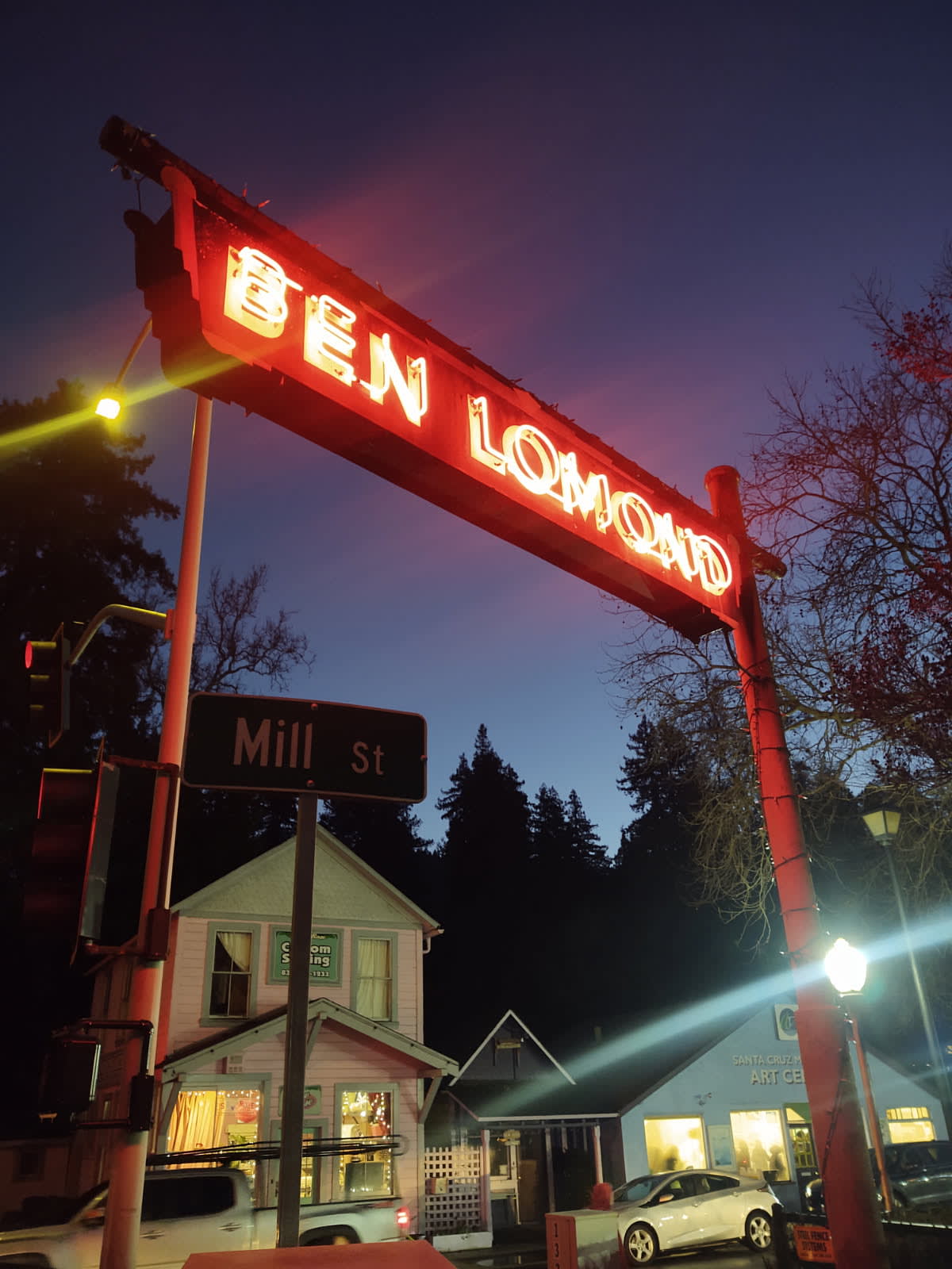 We’re sure you’ve seen the Ben Lomond neon sign out in front of the Ben Lomond Market, right? Ever seen it lit up? Last month, after the First Friday Art Tour at the SCM Art Center, it was ON! Apparently it’s very intermittent these days. We hope to change that. Recently, the Beautification Committee met with a local sign company to see about restoring this landmark to its former glory and getting it working to light up Highway 9 every night! As we learned at Ronnie Trubek’s history talk last weekend, the sign was installed over Mill Street in the early 1930s, so it’s nearly 100 years old. Time for a make-over! We’re still at the beginning stages of making this happen, but look for future news about developments and how you can help support the project.